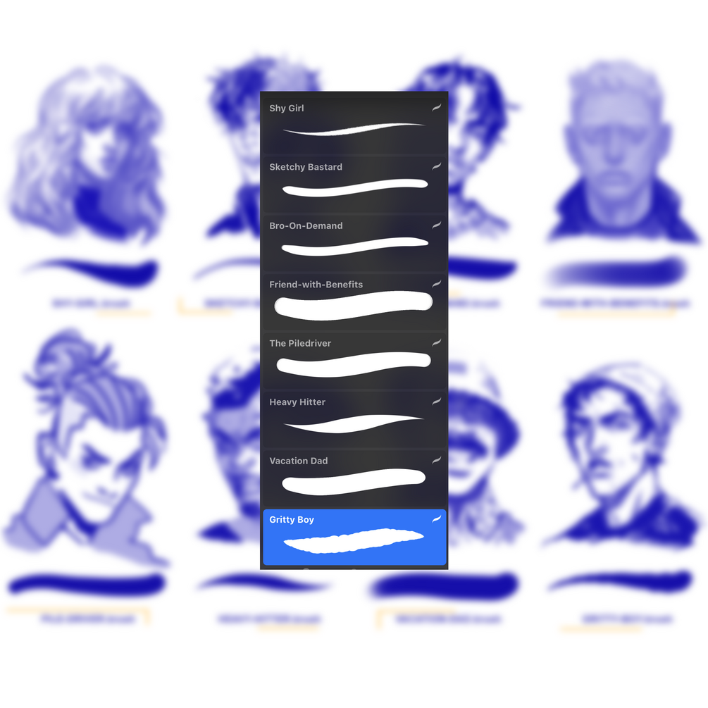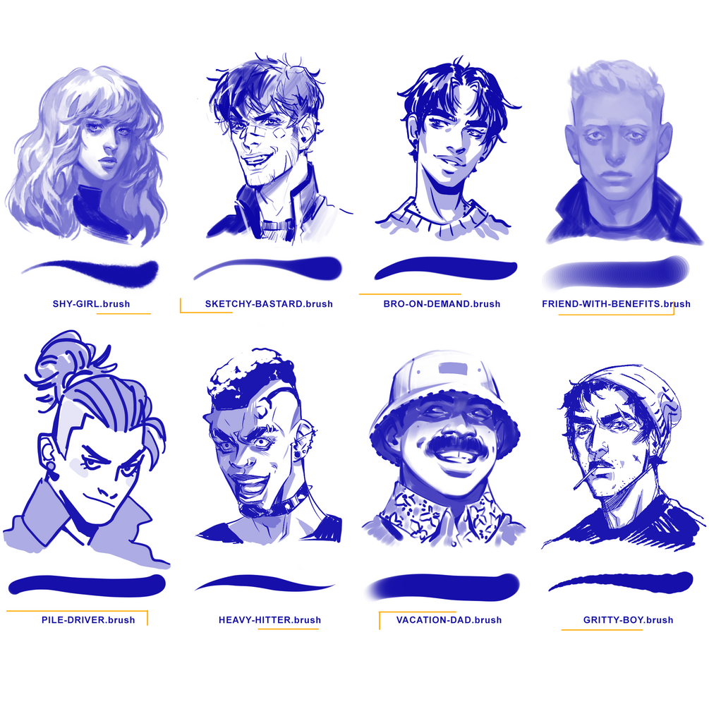 Some Procreate brushes I cooked up! I made each of these with a different flavor of drawing style in mind. Different strokes for different folks!